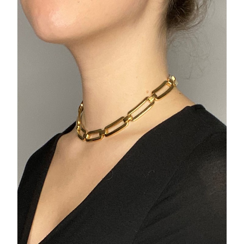 A gold necklace by Mappin & Webb, the open smooth rectangular links separated with plain gold links in 18ct yellow gold, maker's mark and London hallmarks for 2000, 37cm long, 84g