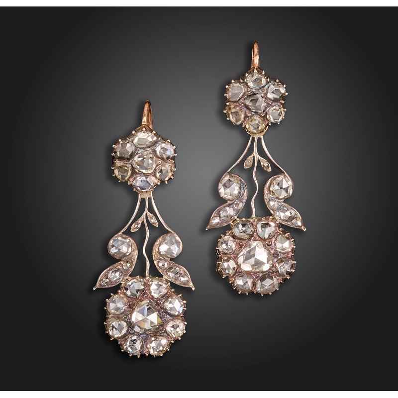 A pair of 18th century diamond earrings