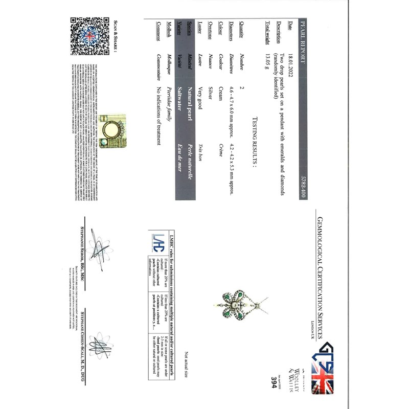 Accompanied by report number 5782-400 from GCS dated January 2022 stating that the two pearls measure 4.6 - 4.7 x 6.0mm 4.2 - 4.2 x 5.3 mm approximately and are natural saltwater.