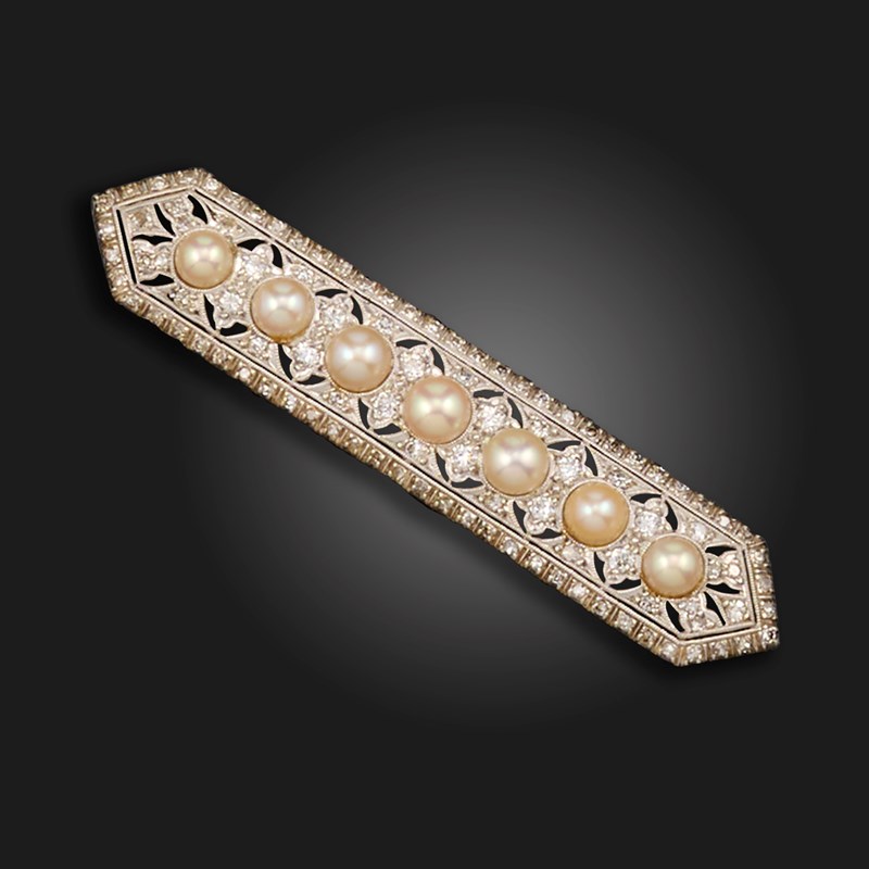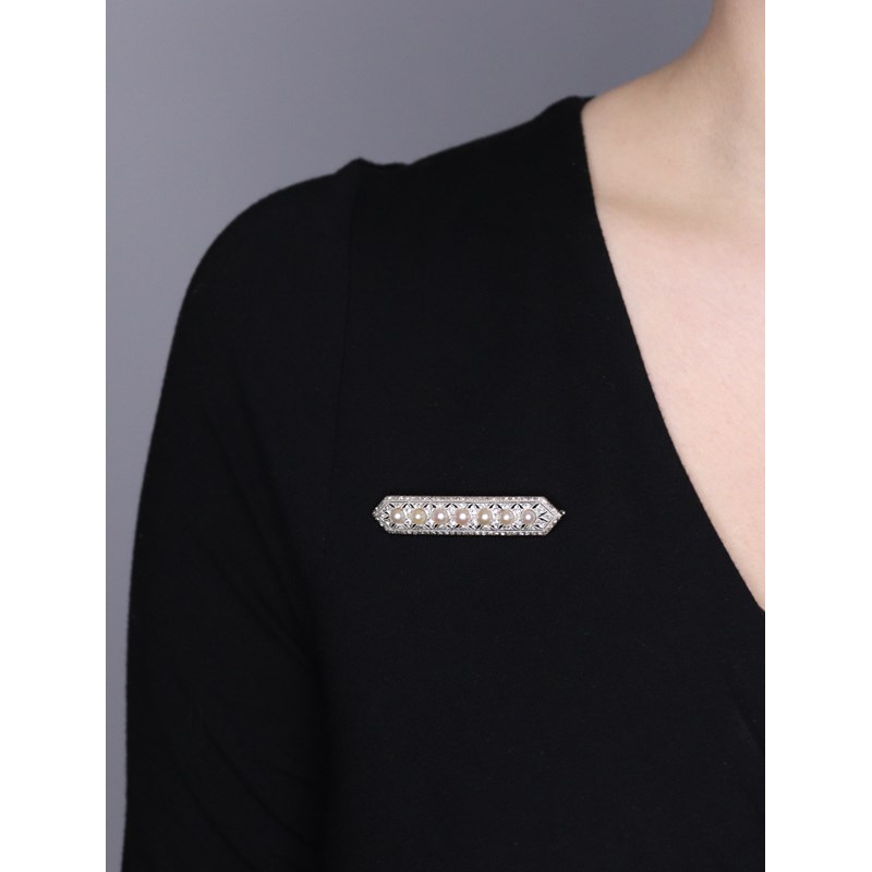A pearl and diamond bar brooch