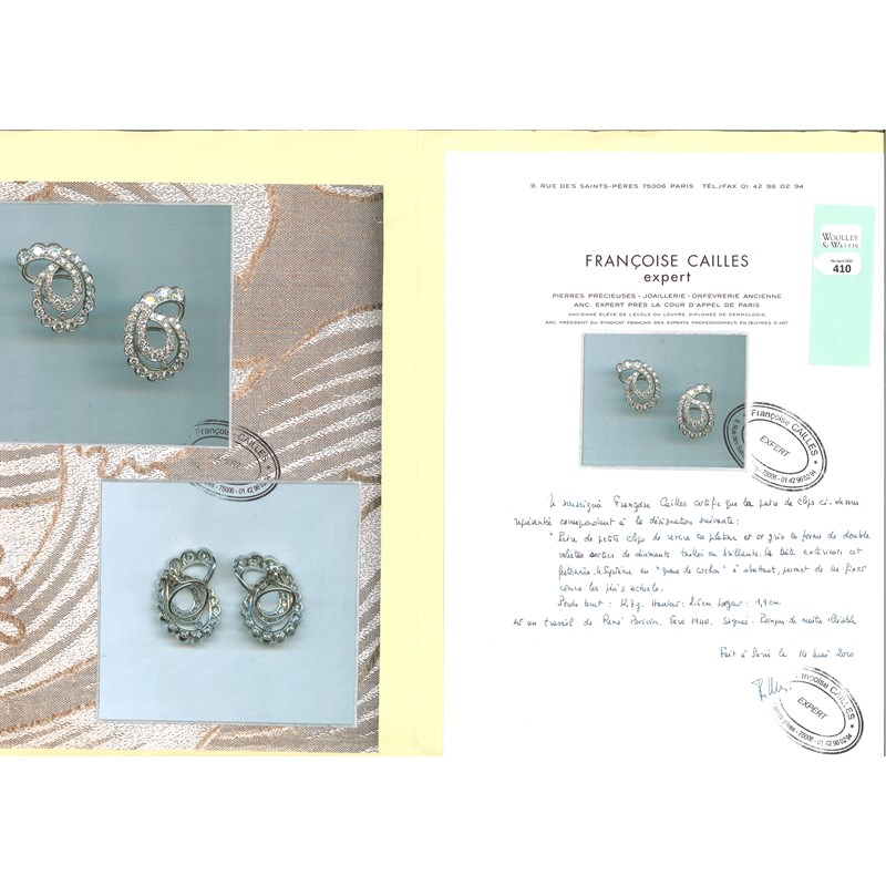 A pair of diamond scroll earrings by René Boivin