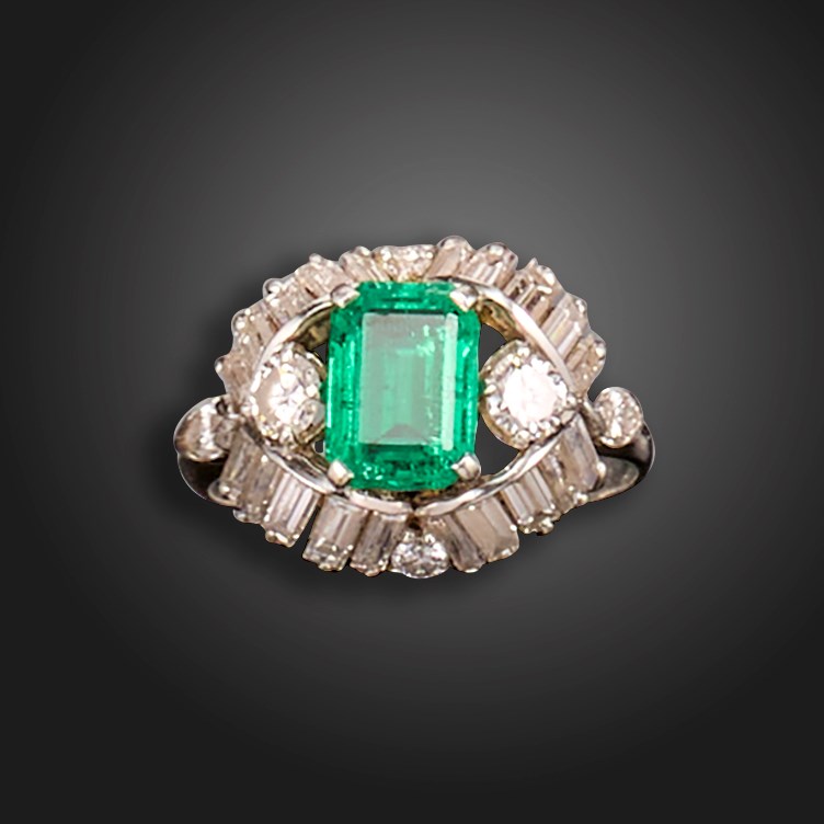 An emerald and diamond cluster ring by Boucheron