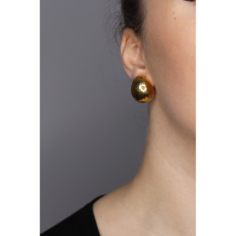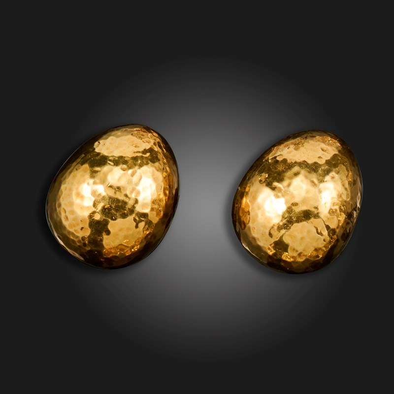A pair of hammered oval gold earrings by Elizabeth Gage