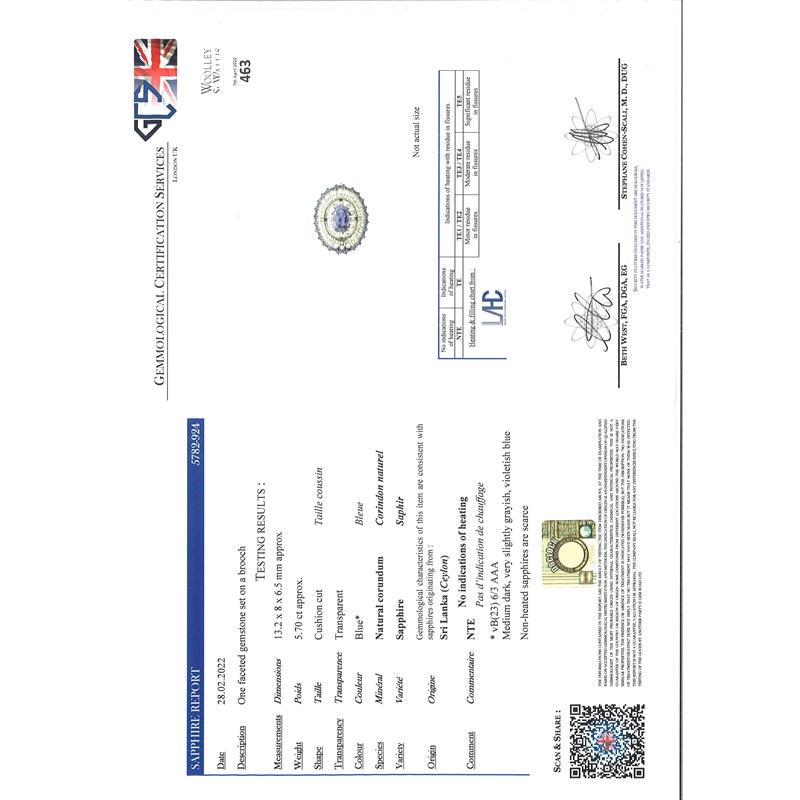 Accompanied by report number 5782-924 from GCS stating that the sapphire is natural with no indications of heat treatment. Origin: Sri Lanka (Ceylon).