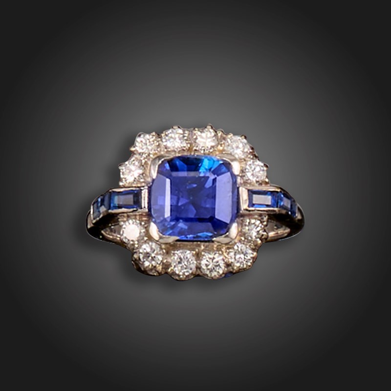 A sapphire and diamond cluster ring, GCS: Sri Lanka, no heat