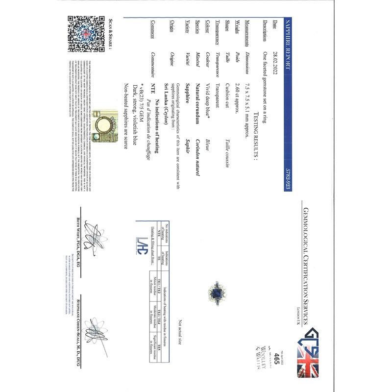 Accompanied by report number 5782-923 from GCS stating that the sapphire is natural with no indications of heat treatment. Origin: Sri Lanka (Ceylon).
