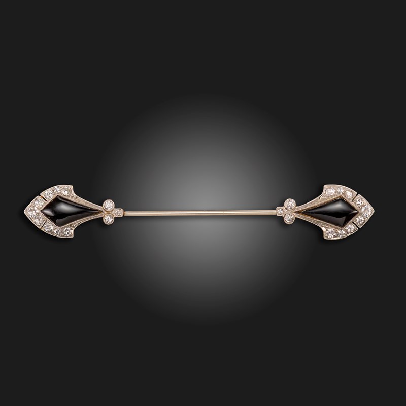 An early 20th century diamond and onyx jabot pin