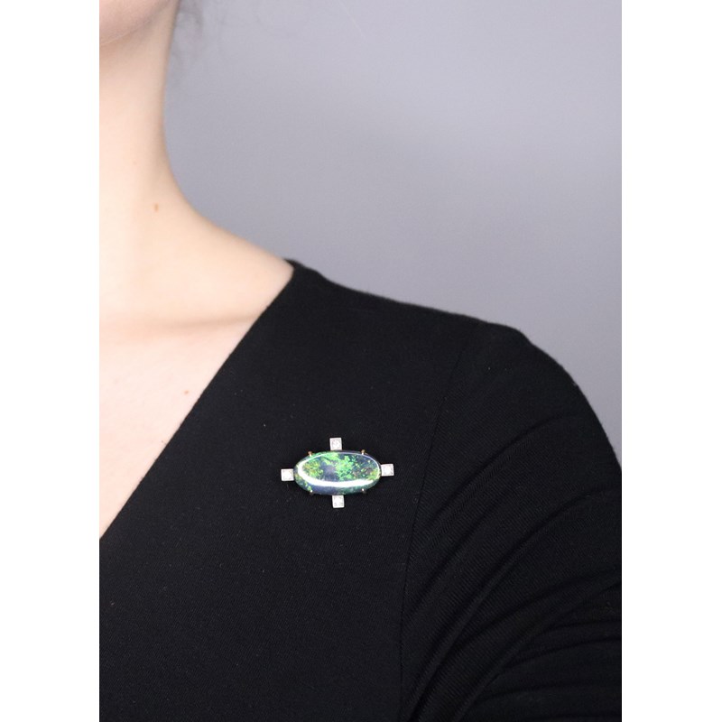 An opal and diamond brooch
