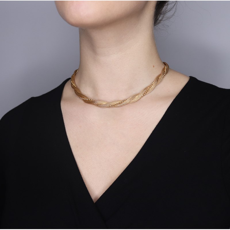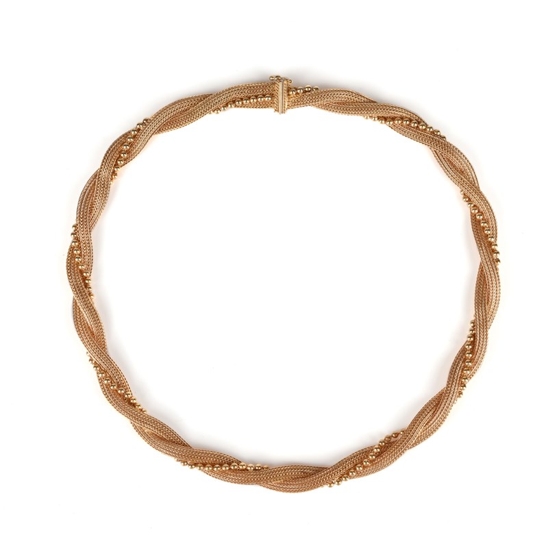 A gold collar necklace, of braided ropetwist design with beaded detail, 18ct London import marks for 1986, 43cm long, 40g