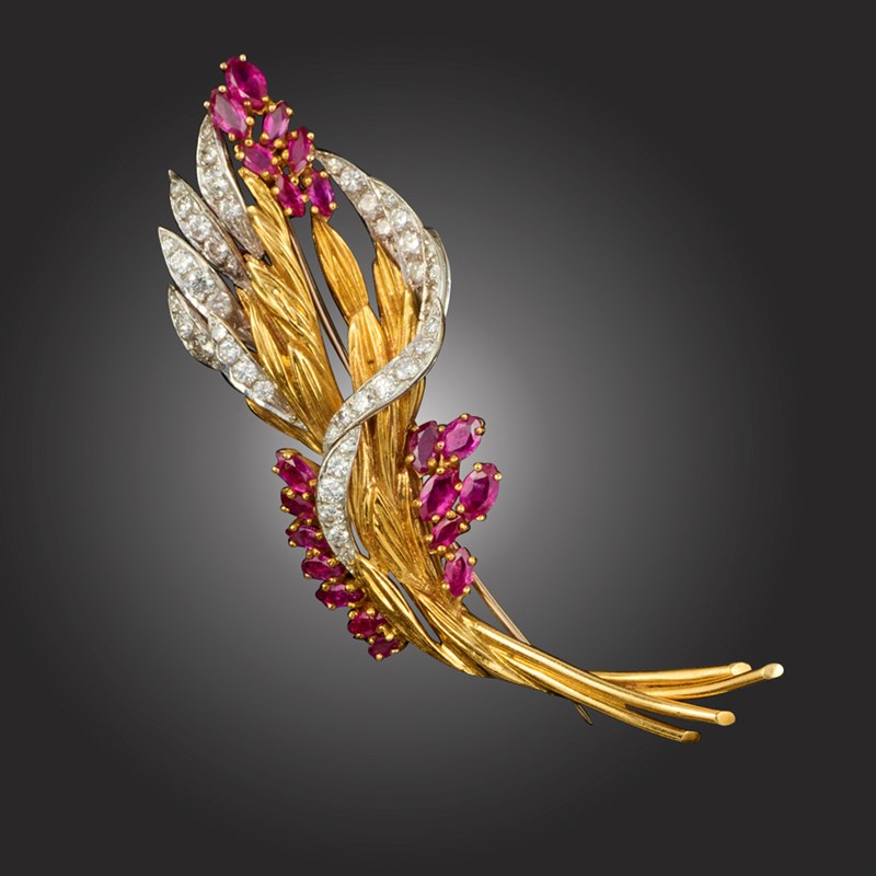 Kutchinsky, a ruby, diamond and 18ct gold brooch, circa 1963