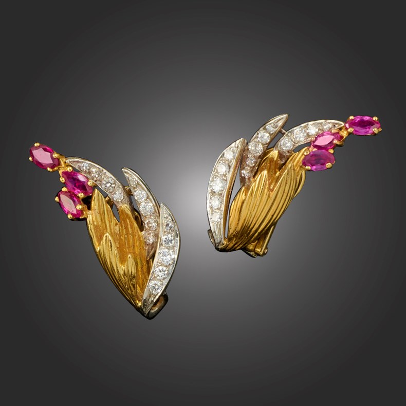 Kutchinsky, a pair of ruby, diamond and 18ct gold earclips, circa 1963