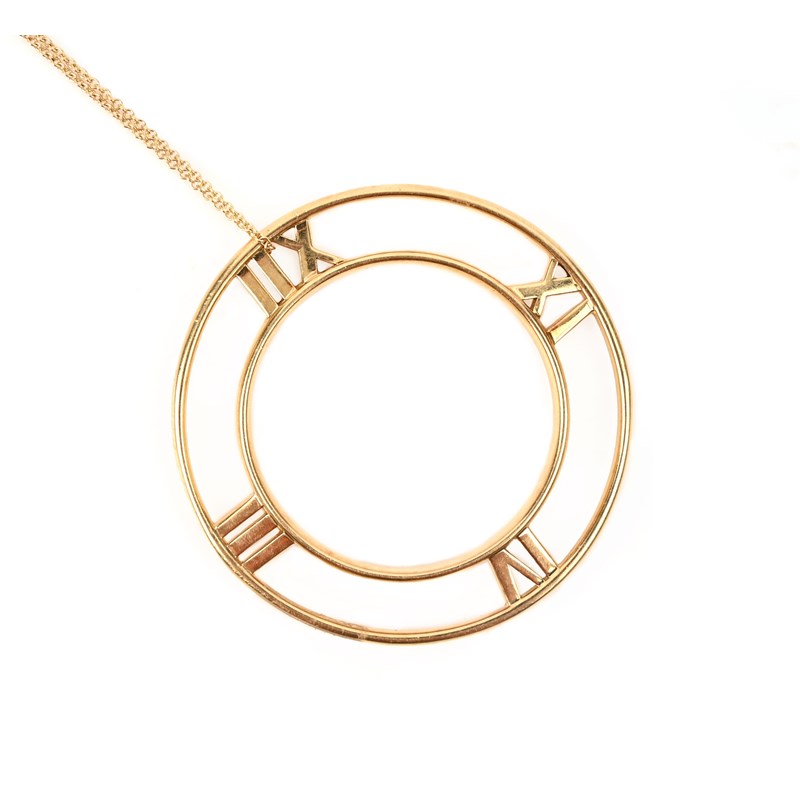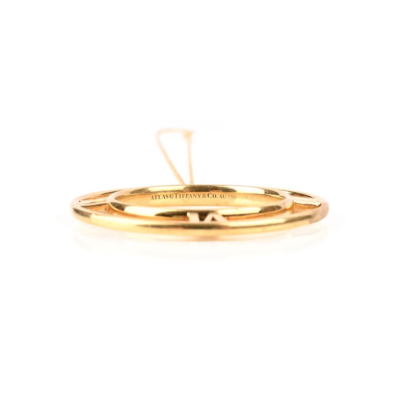 Tiffany & Co., an 'Atlas' pendant necklace, in 18ct yellow gold, stamped ATLAS, TIFFANY & CO, stamped AU 750, diameter 4.9cm, on a fine link chain, stamped TIFFANY & CO, stamped AU 750, length 46cm