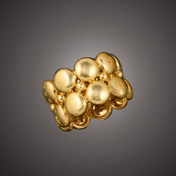 Cartier, a 'Honeymoon' ring, composed of two rows of circular discs, in 18ct yellow gold, signed Cartier, maker's mark JC, numbered 723260 & 53, stamped 750, 14.8g, size M