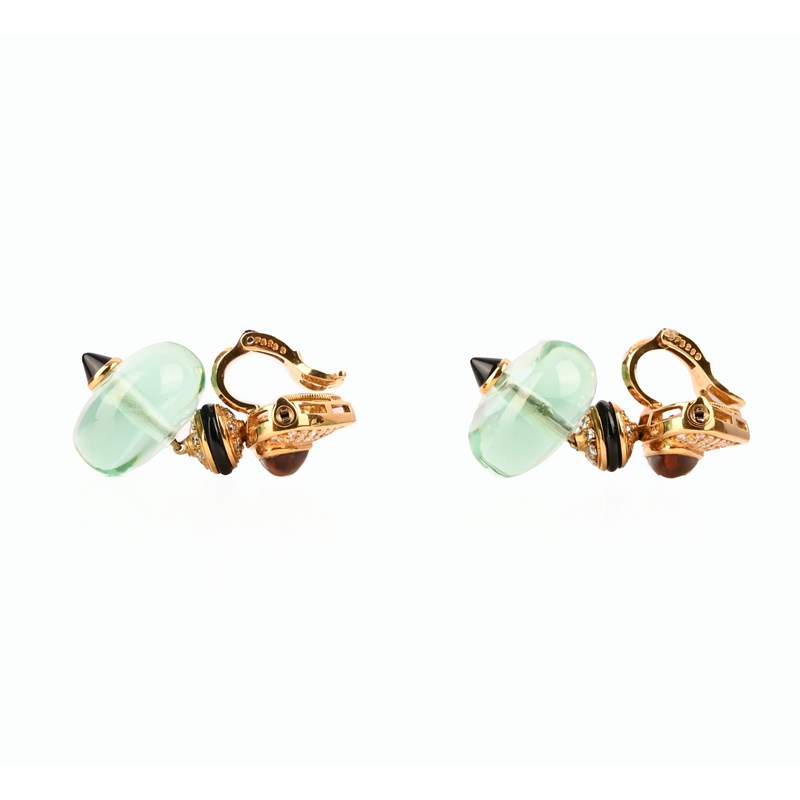 Marina B, a pair of multi-gem interchangeable earclips, the gold surmounts pavé-set with round brilliant-cut diamonds above citrine cabochons, suspending articulated diamond and onyx links above drops interchangeable between citrine, rutilated quartz and chrysoprase beads, secured by onyx terminals, signed ©Marina B, maker's mark MB, numbered F5268, Italian control mark, stamped 750, clip fittings, length 4.5cm