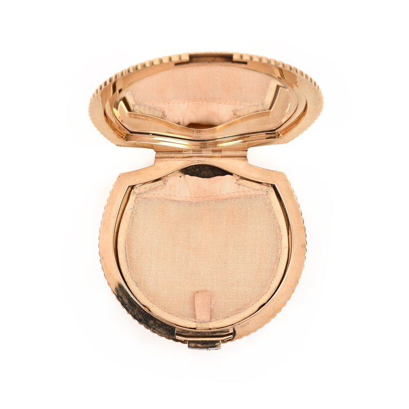 Cartier, a gold compact, designed as a stylised clam shell in 9ct gold