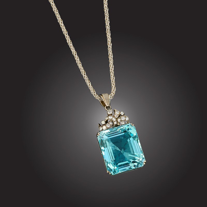 An aquamarine and diamond pendant