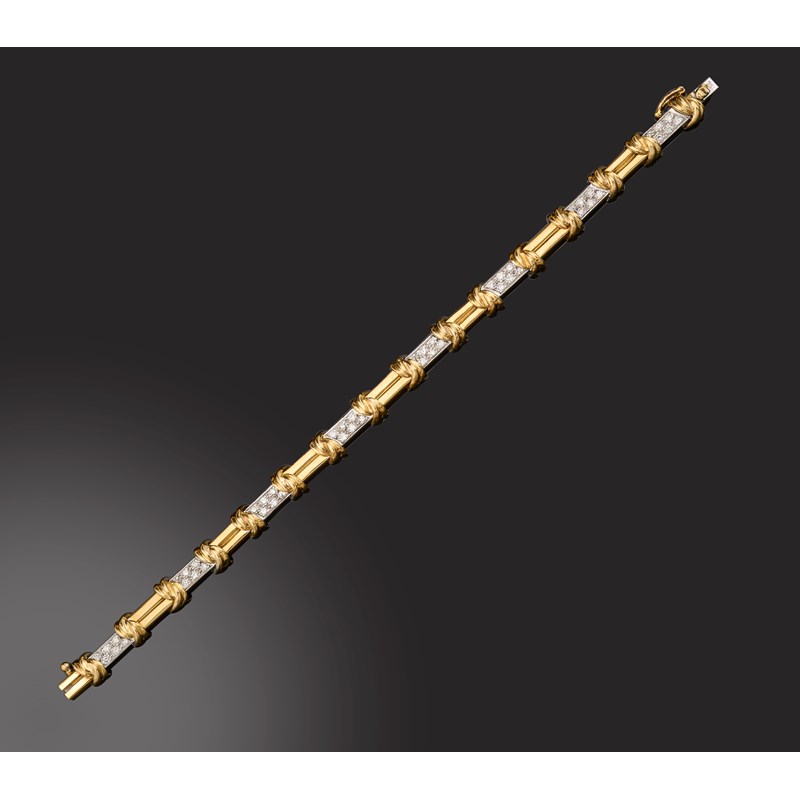 A diamond-set gold bracelet, alternately-set with plain polished links and diamond-set links