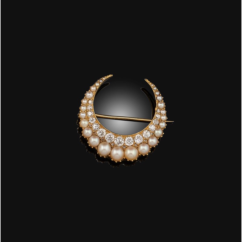 Hunt & Roskell, a pearl and diamond brooch, late 19th century, designed as a crescent moon, set