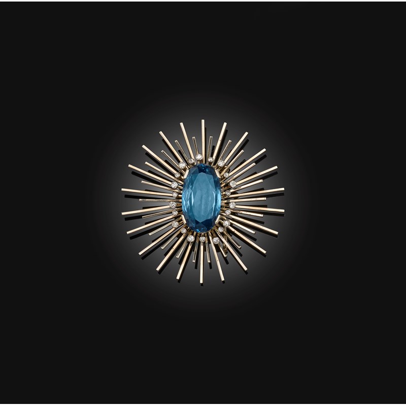 A synthetic spinel and diamond brooch, of starburst design centring on a large oval synthetic spinel