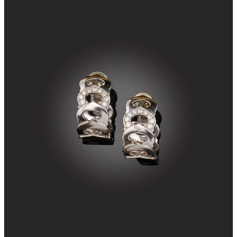 Cartier, a pair of diamond ear clips, 'C de Cartier', each hoop composed of 'C'-shaped motifs in white gold, one set with brilliant-cut diamonds, length 2.8cm, signed Cartier, numbered 810826, French assay marks for 18ct gold, maker's mark for Pierre Brun