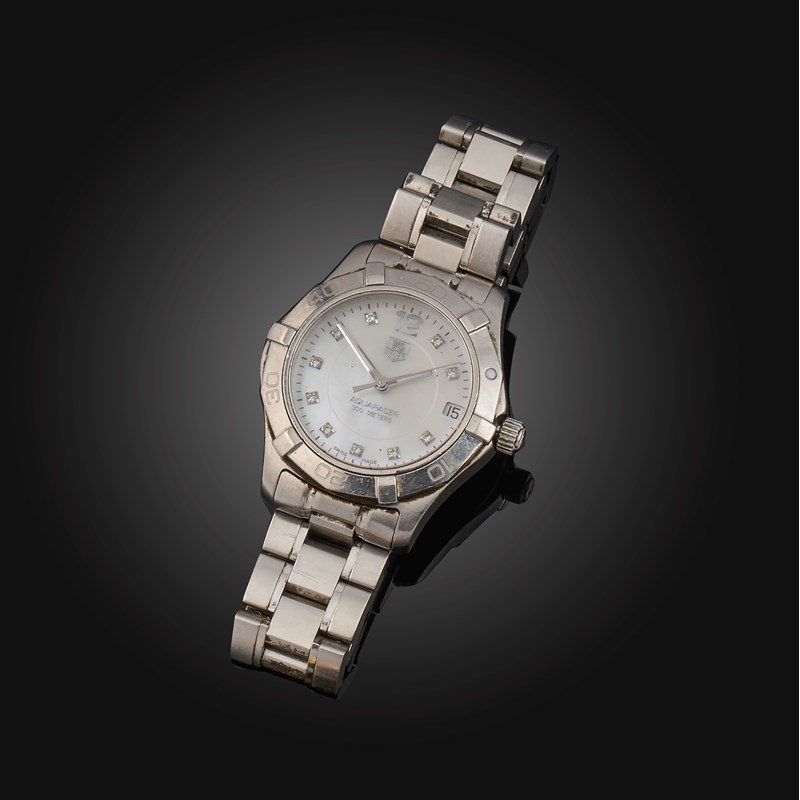 Tag Heuer, a lady's stainless steel, mother of pearl and diamond wristwatch, 'Aquaracer', ref.