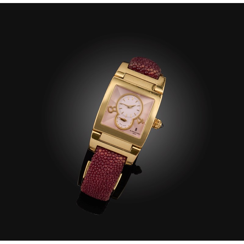De Grisogono a lady's gold 'Instrumentino' dual time wristwatch, ref. 6760, the rectangular pink