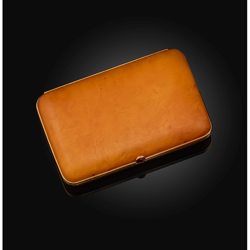 An amber and garnet cigarette case, circa 1896, of rectangular outline with rounded corners in