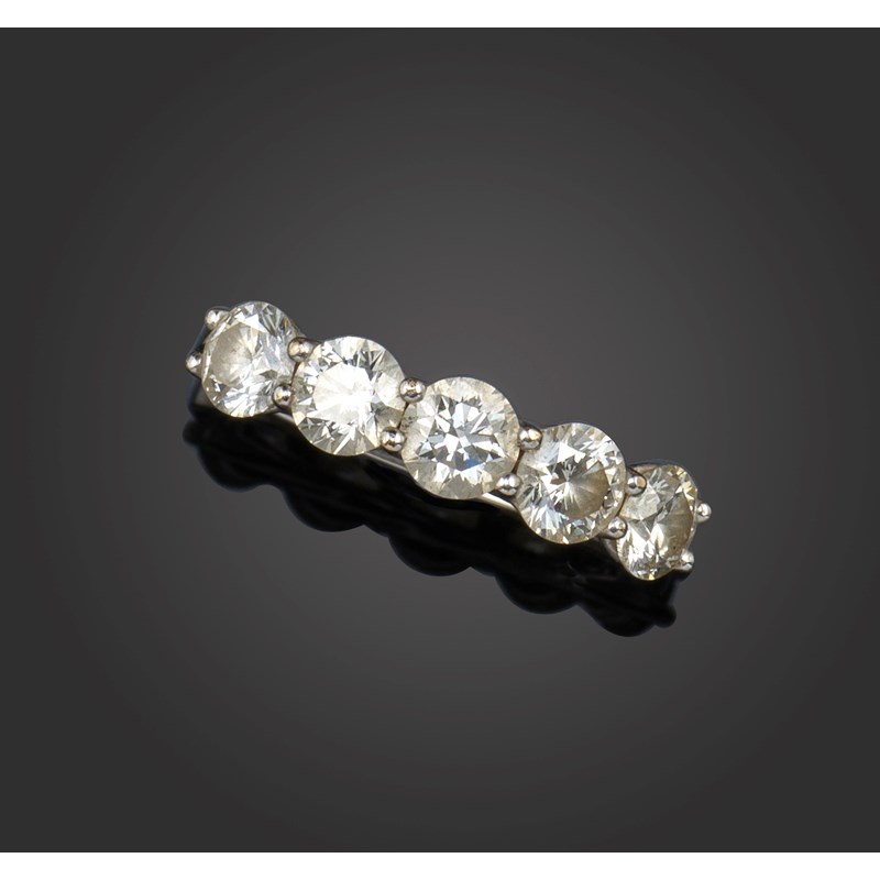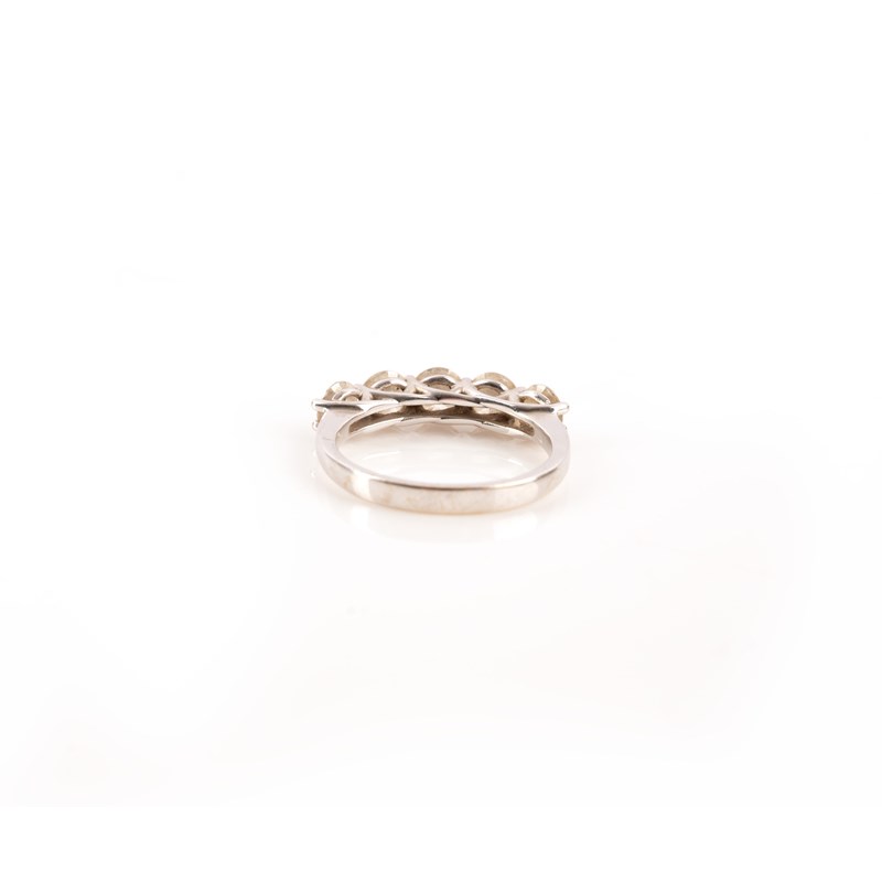 A diamond five-stone ring, the round brilliant cut diamonds claw-set in 18ct white gold, London hallmarks, date letter for 2013, stamped 18K, size P