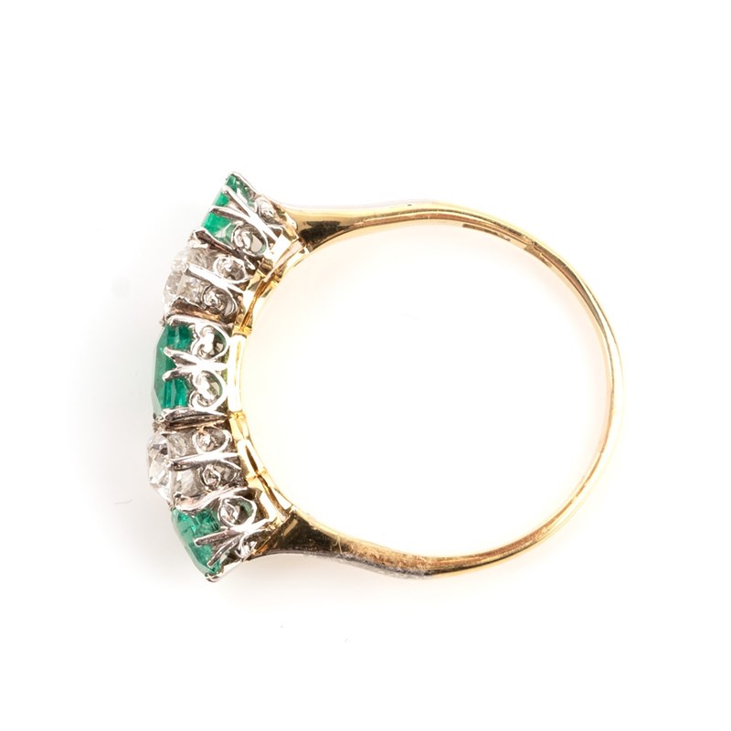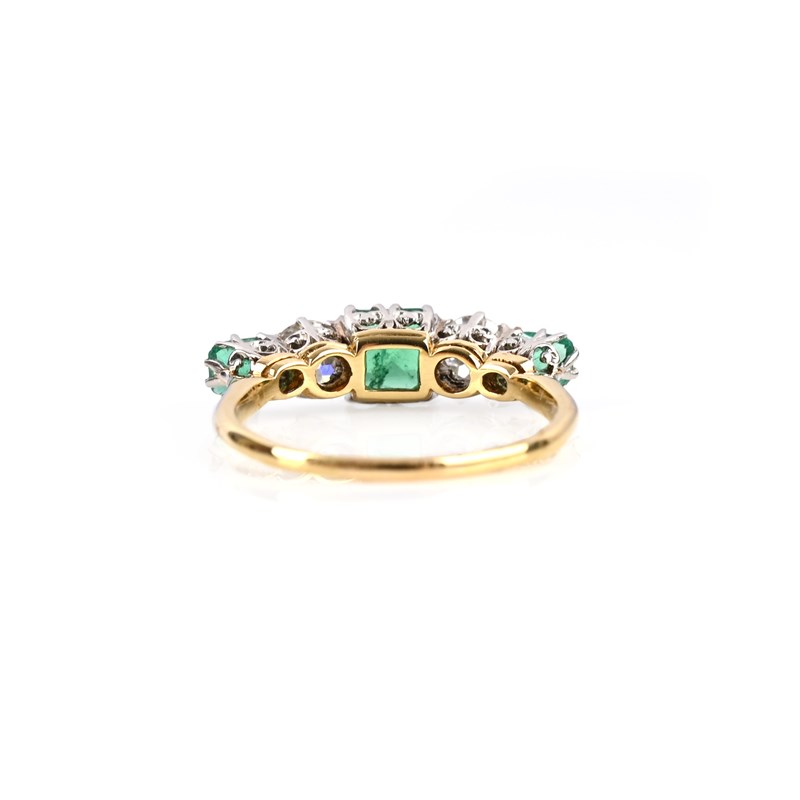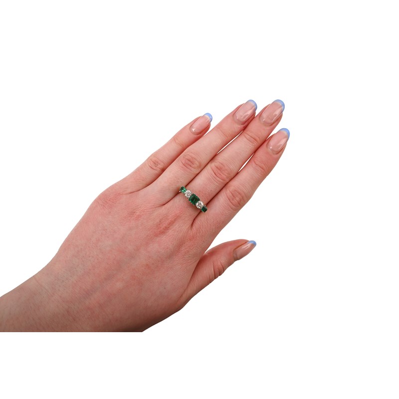 An emerald and diamond five-stone ring