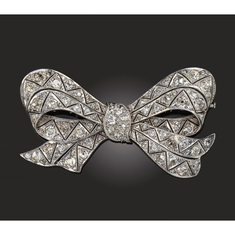 A diamond-set bow brooch