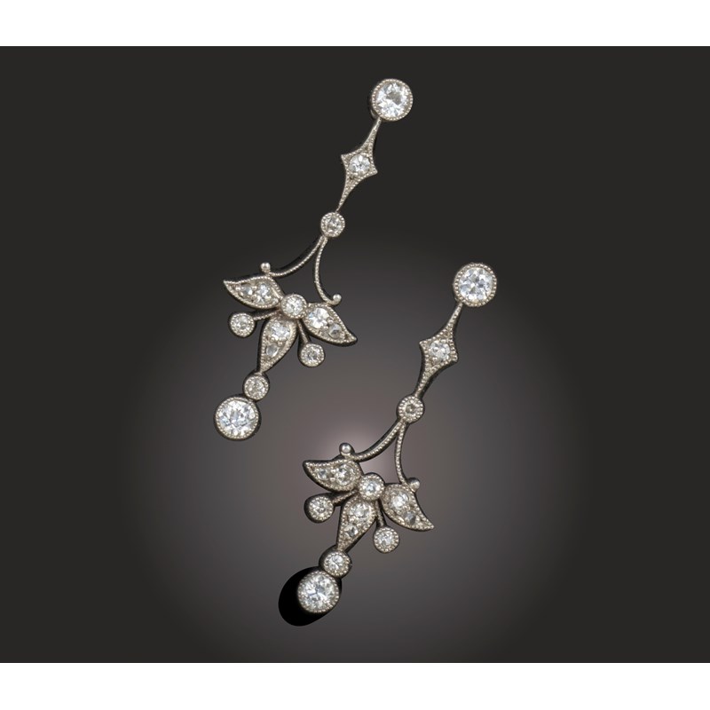 A pair of Belle Epoque diamond drop earrings, circa 1900