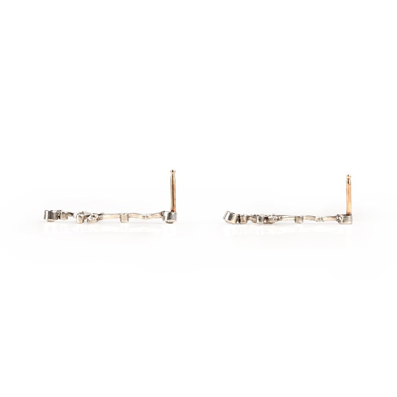 A pair of Belle Epoque diamond drop earrings, circa 1900, of openwork foliate design, with millegrain-set round brilliant-cut and single-cut diamonds in platinum, post fittings, length 2.5cm