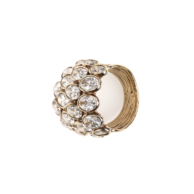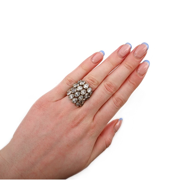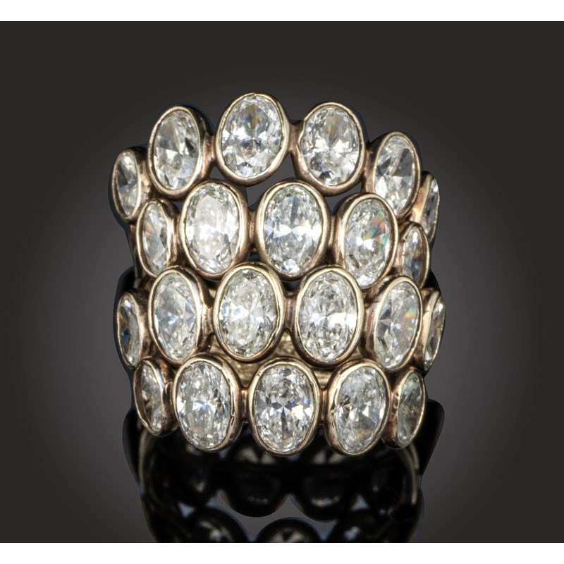 A diamond cluster ring, set with rows of graduated oval-shaped diamonds rubover-set in gold, size L