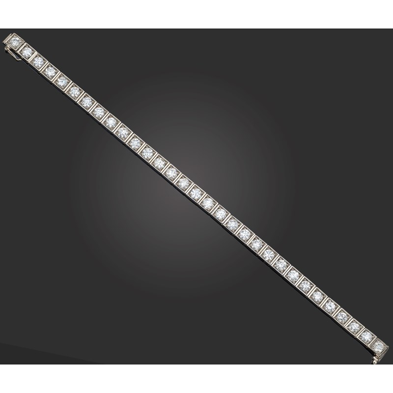 A diamond line bracelet, the round brilliant-cut diamonds in square white gold settings, total approximate diamond weight 8.50cts, stamped 14K, length 20.5cm