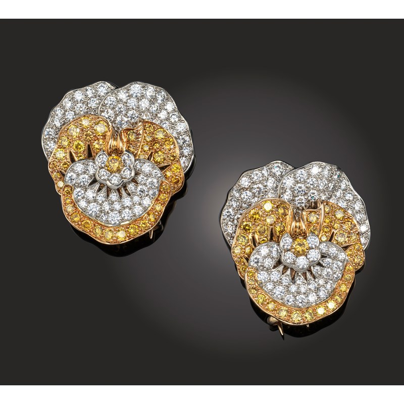 Oscar Heyman & Brothers, a pair of yellow and white diamond brooches