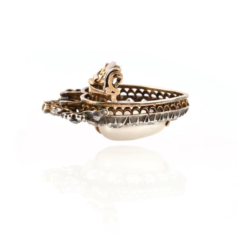 A Victorian natural pearl and diamond brooch, late 19th century