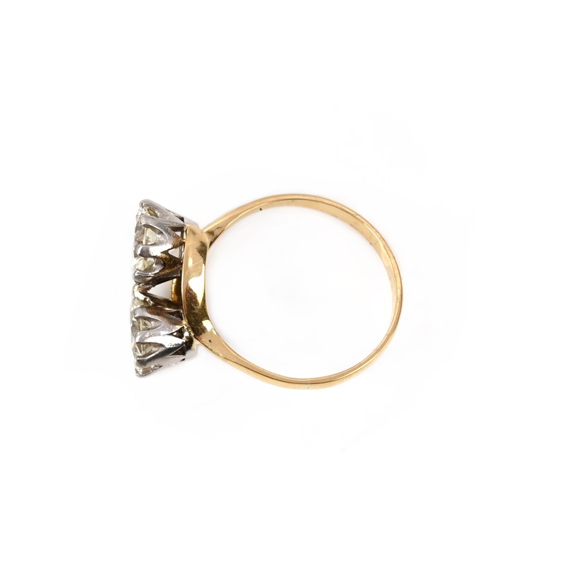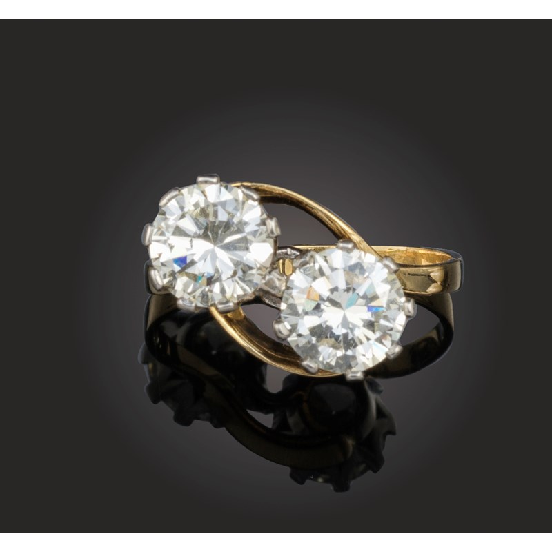 A diamond two-stone ring, set with round brilliant-cut diamonds weighing 2.23 and 2.24cts in platinum and 18ct gold, Birmingham hallmarks, size W