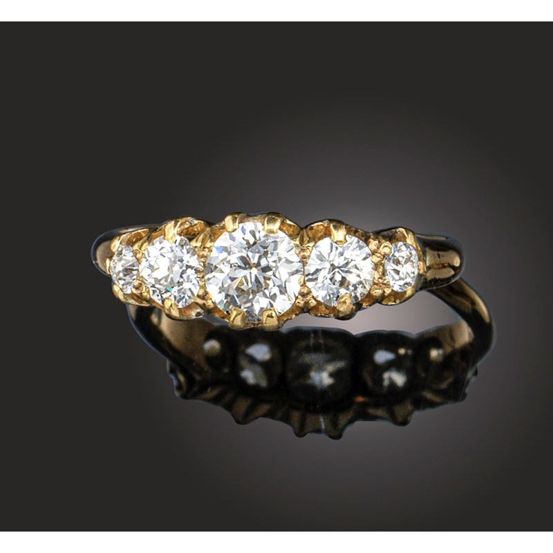 A diamond five stone ring, set with graduated old circular-cut diamonds in yellow gold, size P