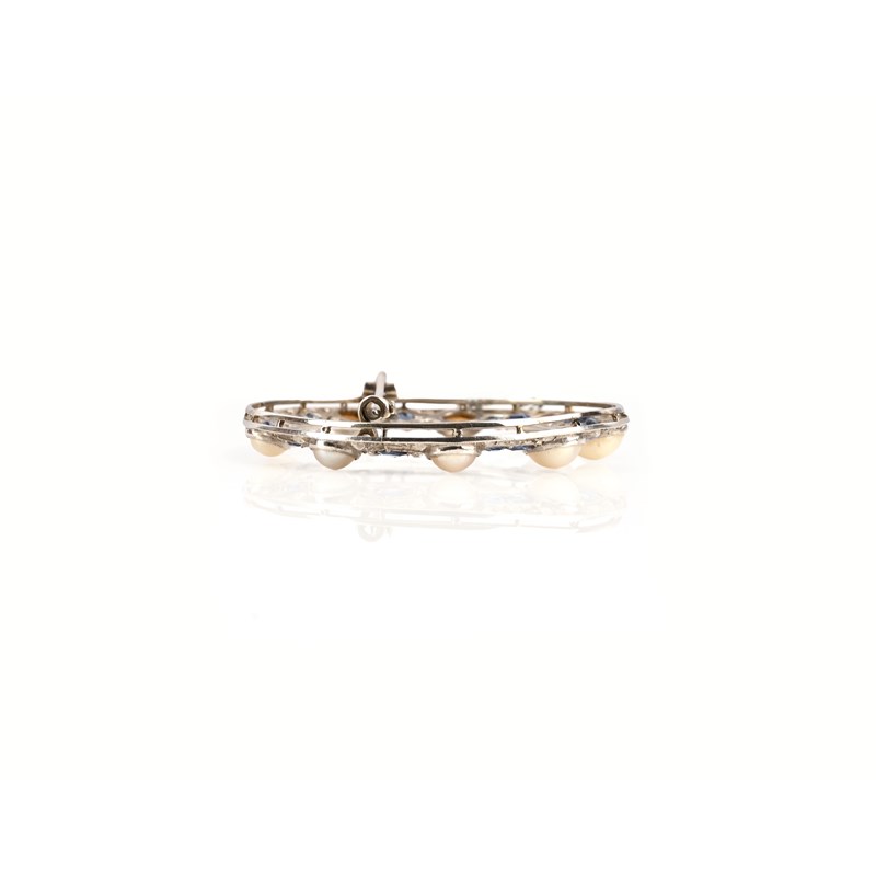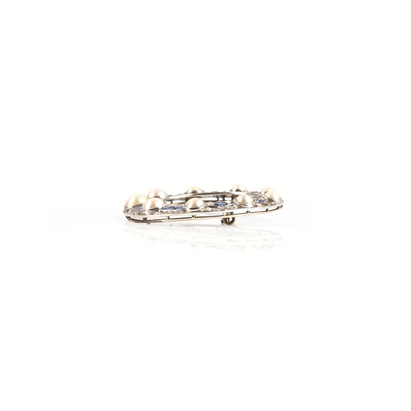 An Art Deco cultured pearl, sapphire and diamond brooch