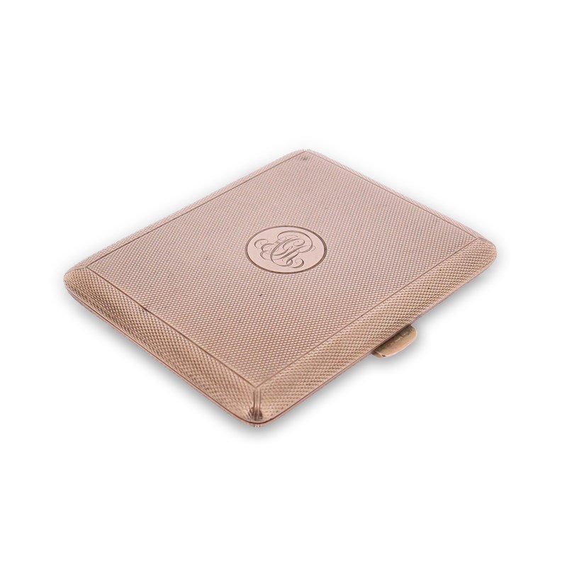 A 9ct gold engine-turned cigarette case, with engine-turned decoration overall and monogram AGR, 9ct hallmarks, maker's mark, 8cm wide, 76g