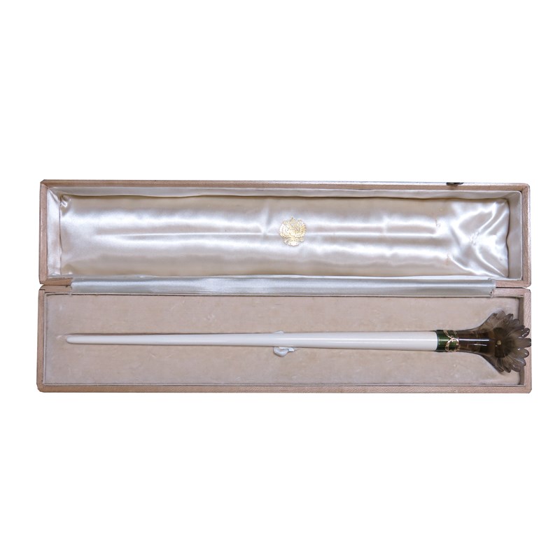 ‡ An ivory baton with carved smoky quartz engraved foliate handle
