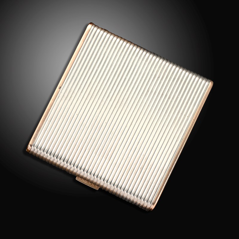 A silver and gold cigarette case by Sterlé, of rectangular silver nibbed form, with plain gold edges and thumbpiece, the interior signed 'Sterlé Paris' and numbered '2637', French control marks, maker's lozenge, stamped 'Argent', 8.7 x 8.1cm, 140g