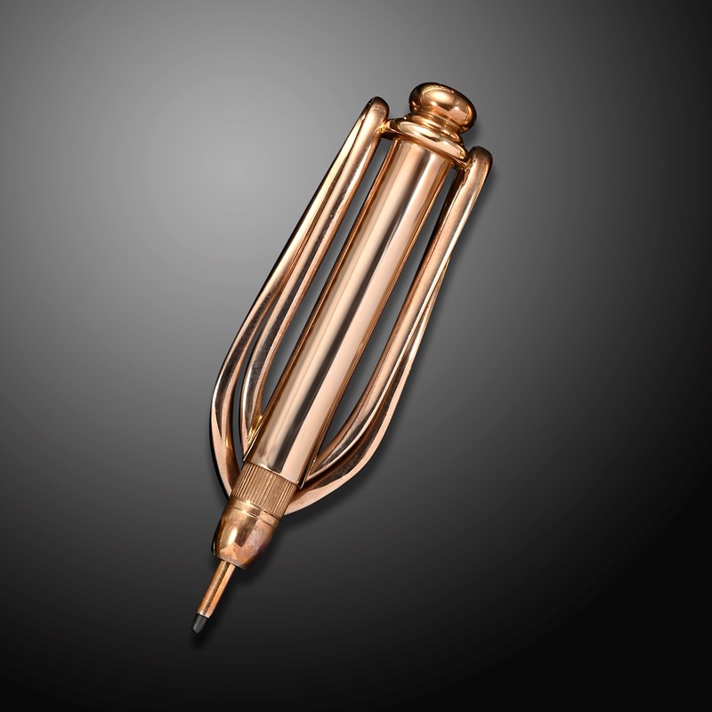 A gold propelling pencil with gold clip, 6cm long (unextended), in fitted case by Cartier
