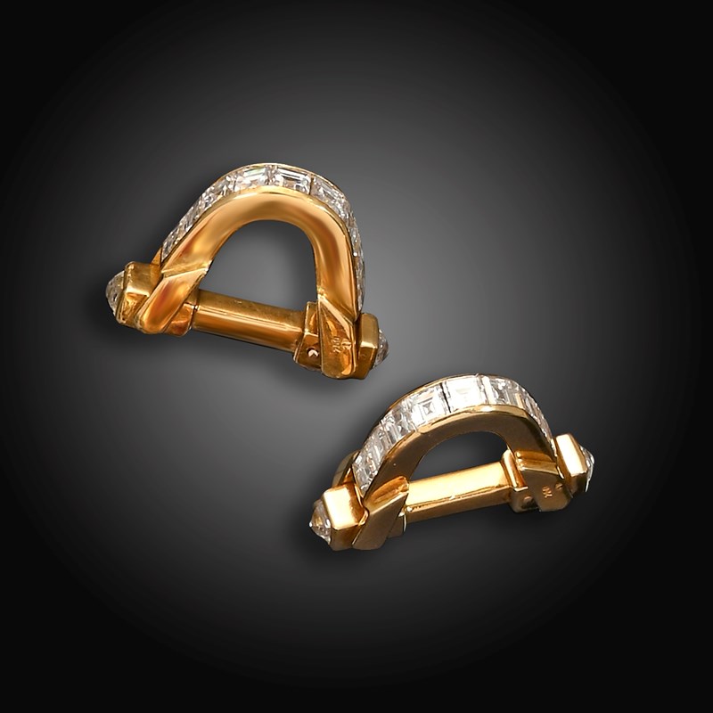 A pair of French gold diamond-set A-form cufflinks