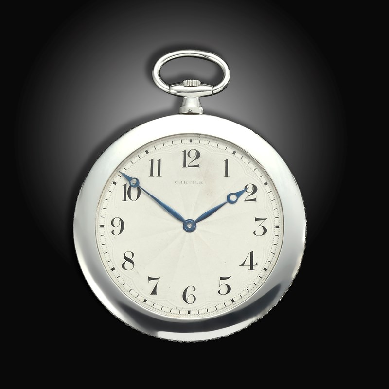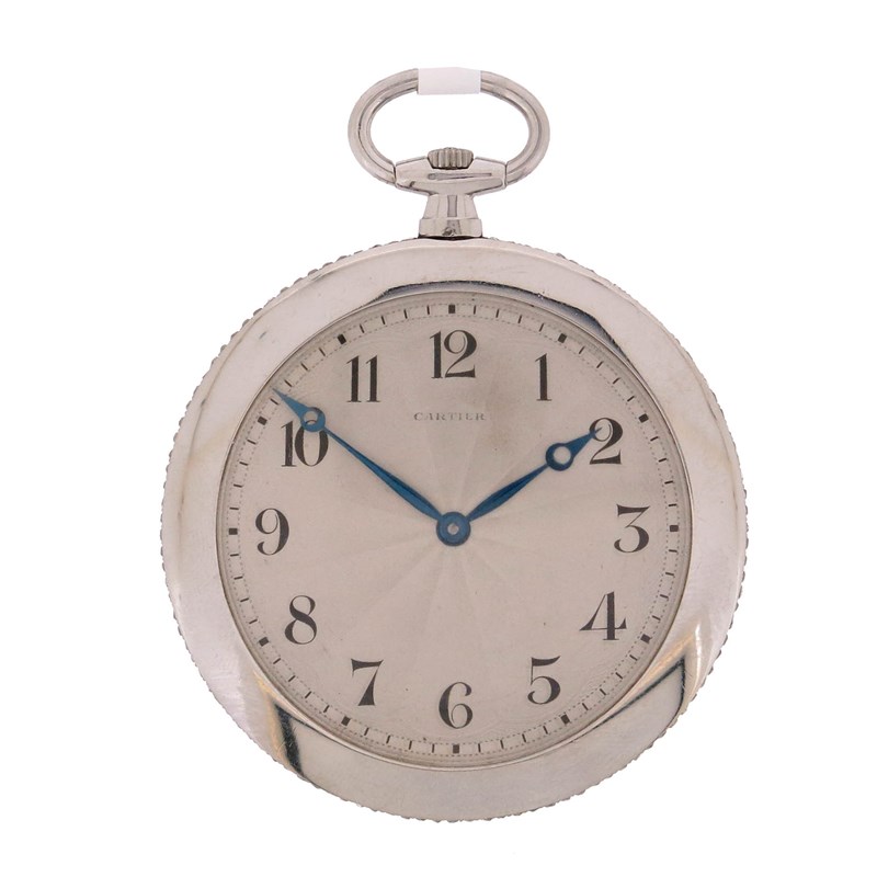 A French platinum and diamond-set open-faced keyless wind watch by Cartier