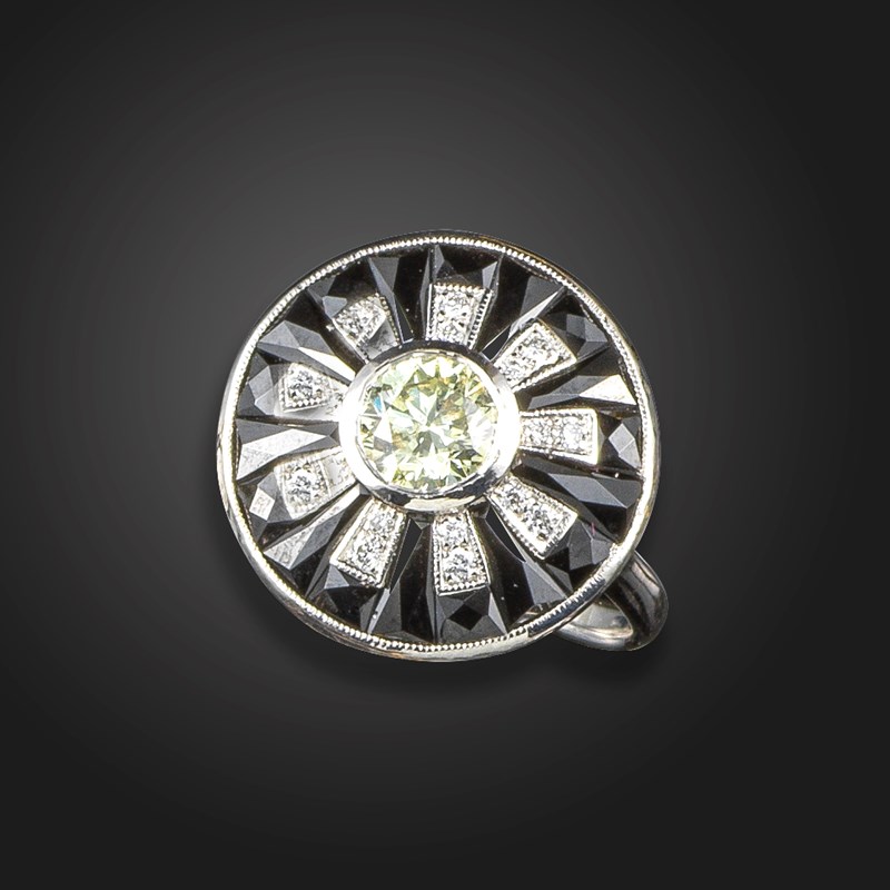 An onyx and diamond cluster ring
