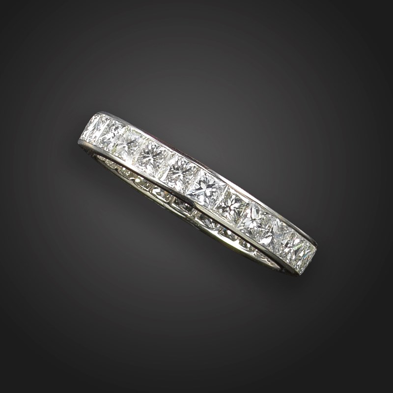 A diamond eternity ring, channel-set with princess-cut diamonds in platinum, approximately 2.50cts total, size N