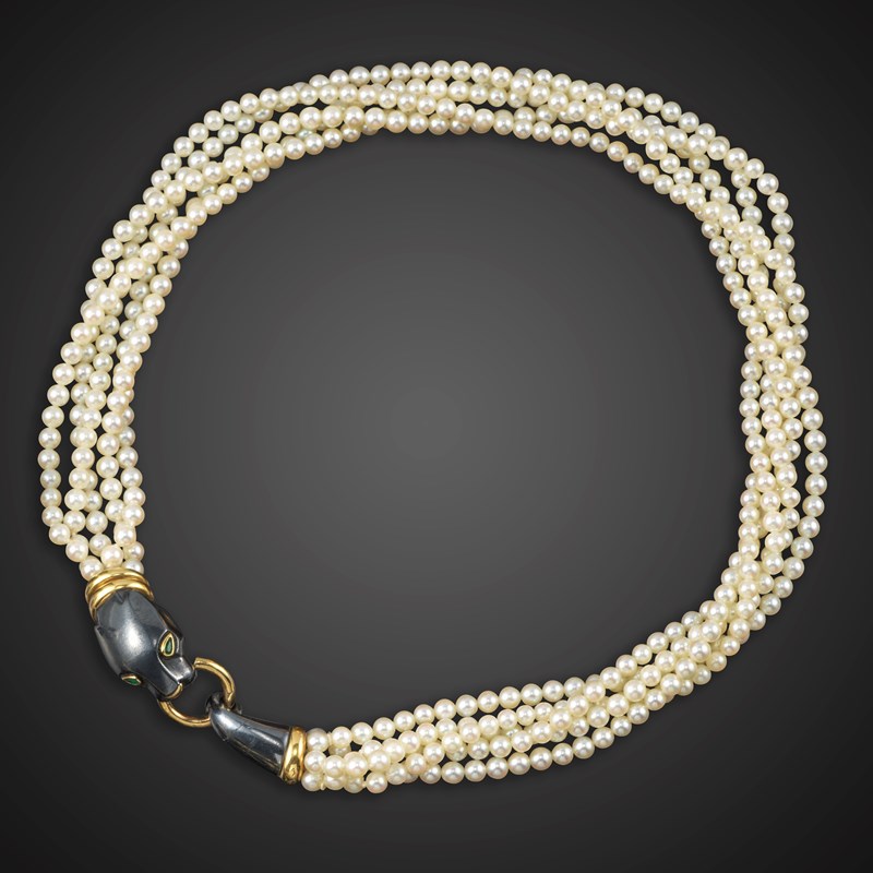 A 'Panthere' five-row cultured pearl necklace by Cartier