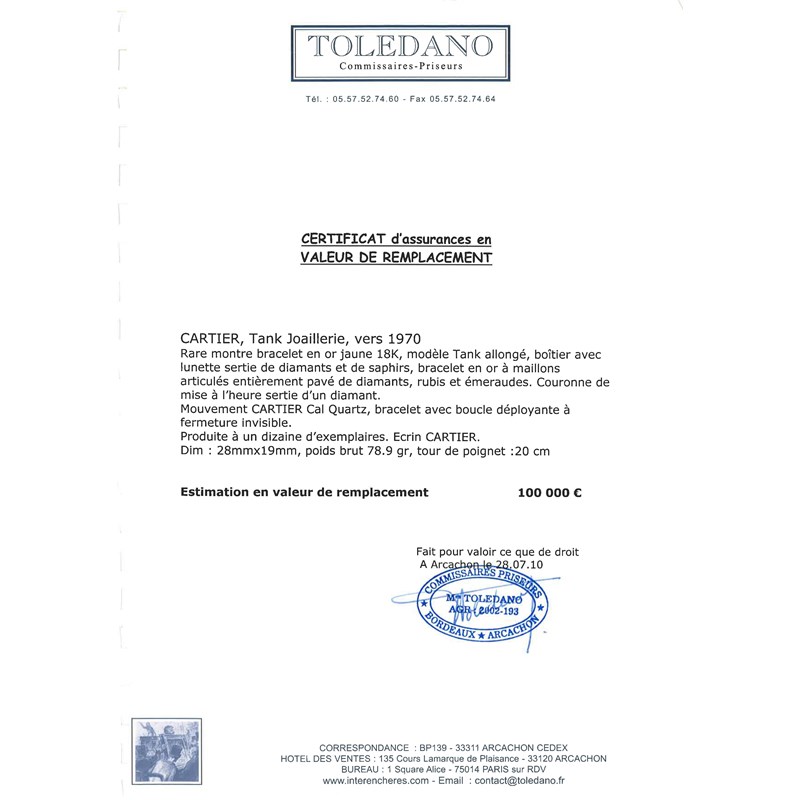 Accompanied by an insurance valuation from Cartier dated 2011.