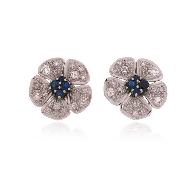 A pair of sapphire and diamond flowerhead earrings